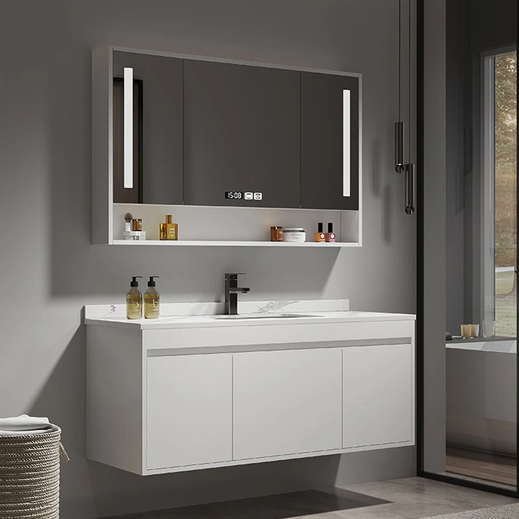 خزانة ملابس وغسل من الخشب الصلب الحديث أثاث الحمام الأسود خزانة حمام فاخرة مع خزانة مرآة ذكية