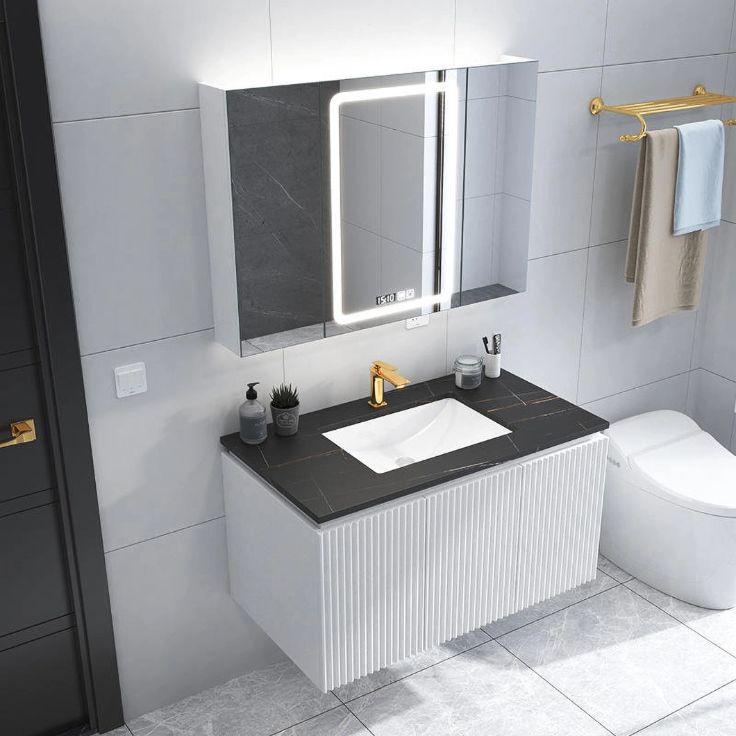 الغرور الحمام الرخامي الحائط مع LED مرآة الغرور الحمام الذكية مرآة مجلس الوزراء